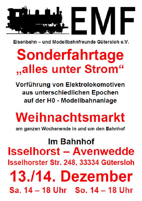 13. und 14.12.2025 Bahnhof Isselhorst Weihnachtsmarkt am Bahnhof und Sonderfahrtag des EMF